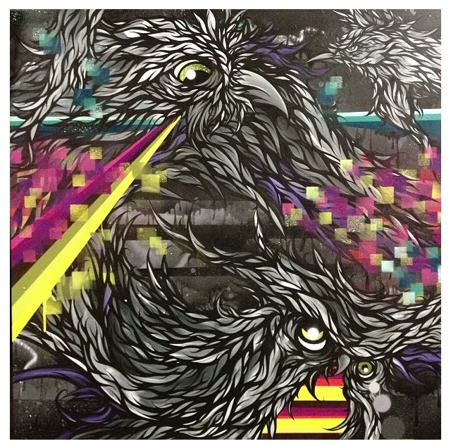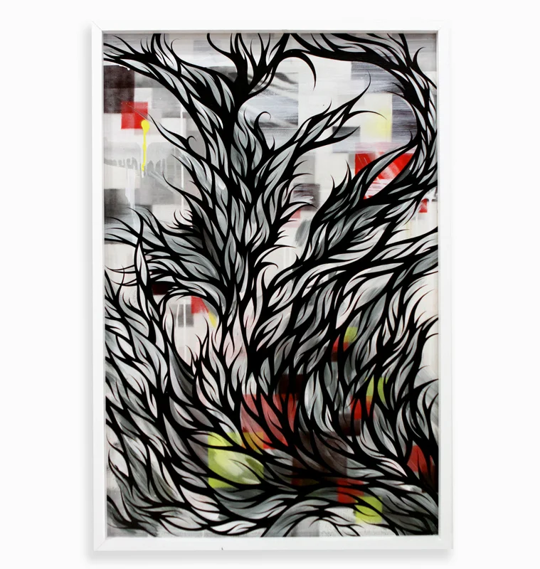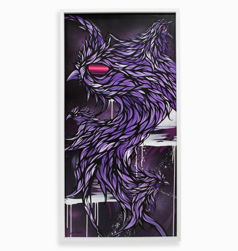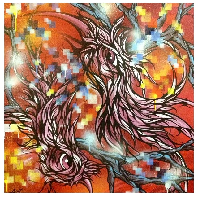 Malt is a self taught artist, living and working in Metro Detroit. Blending graffiti and aerosol techniques with his signature acrylic style, the latest work from Malt takes an abstract spin on traditional landscapes and the characters that inhabit the psychedelic backdrops. The juxtaposition of forest birds, trees, life/death, growth/decay, strength/weakness is what keeps things fresh and habitually interesting in Malt's work.