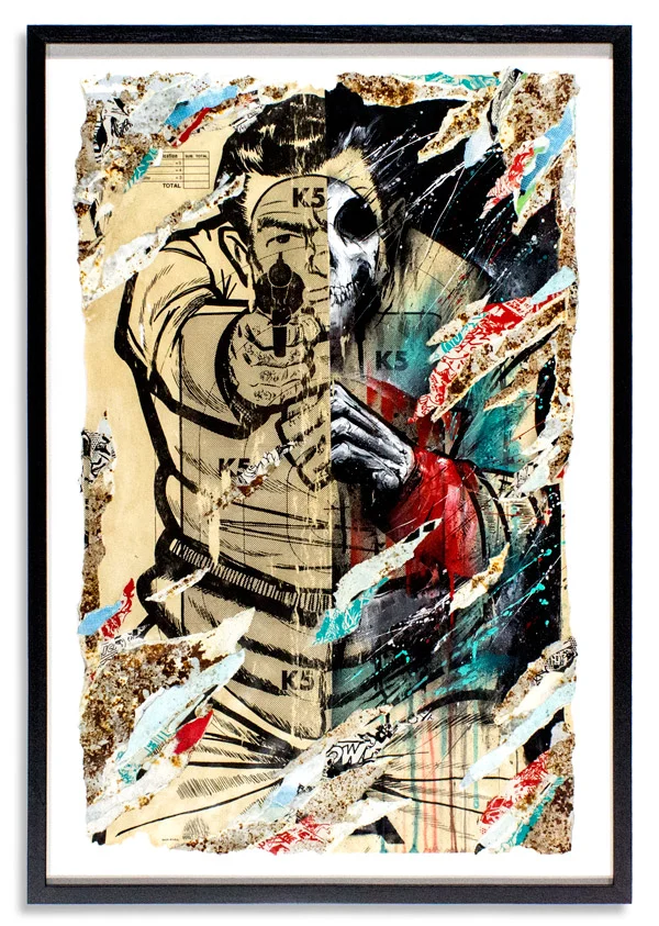 Aerosol, Acrylic, Screen Print & Reclaimed Paper on Target Poster