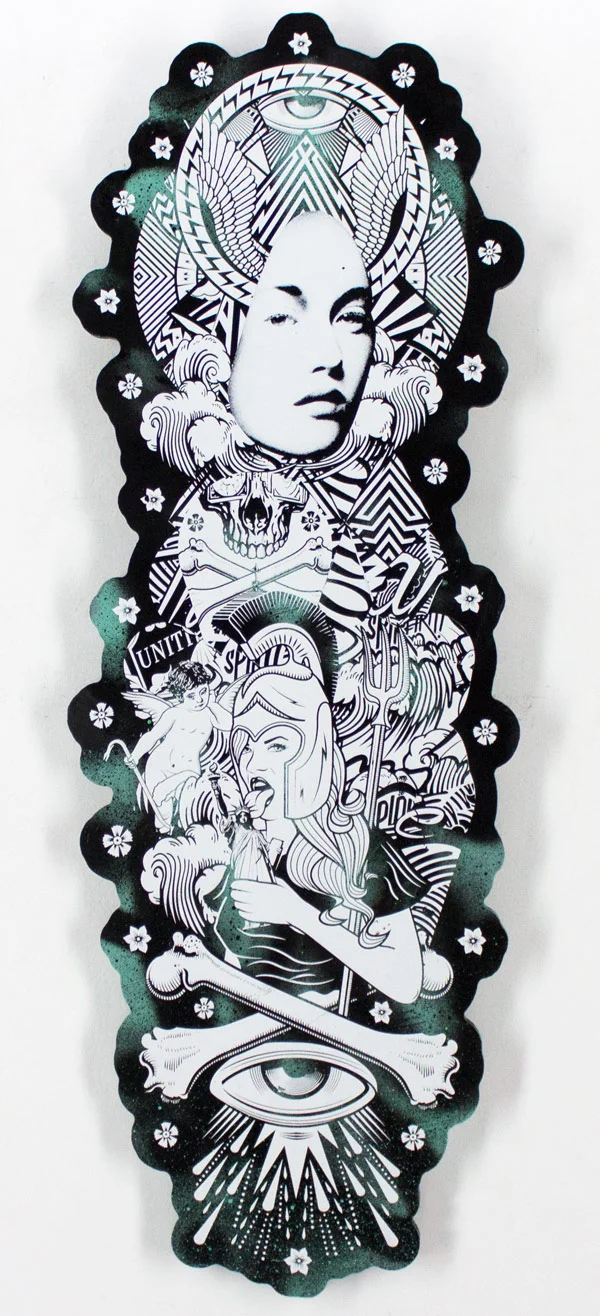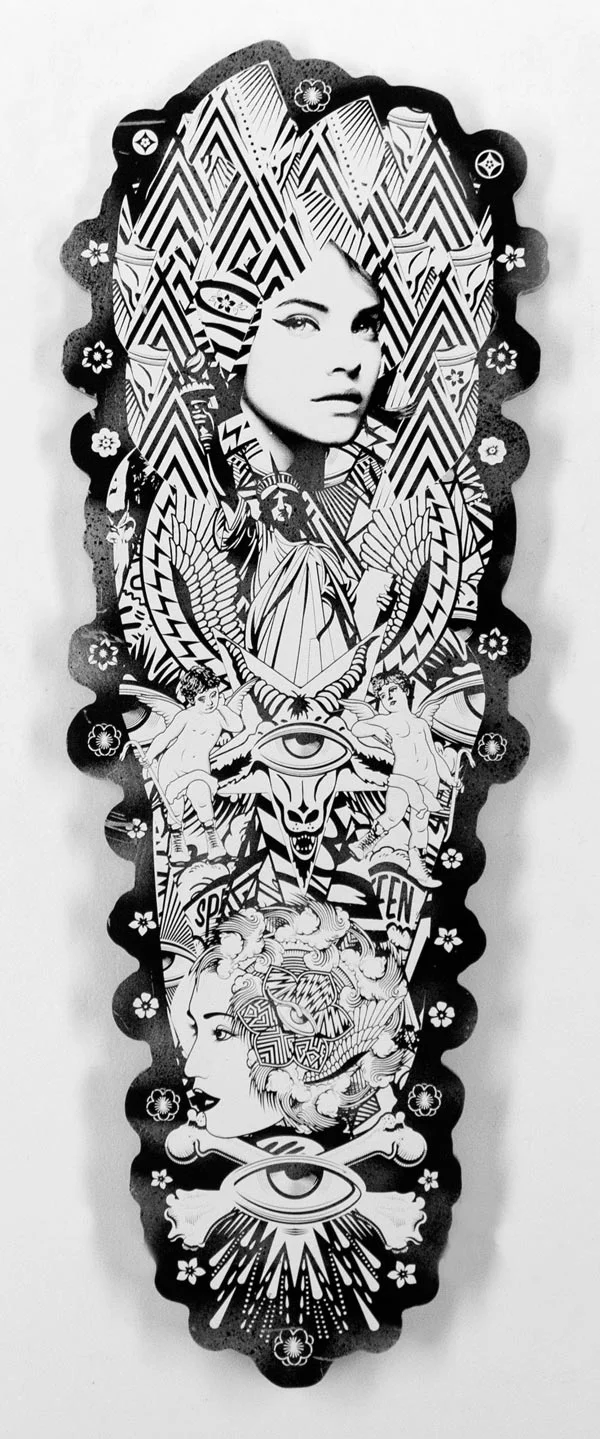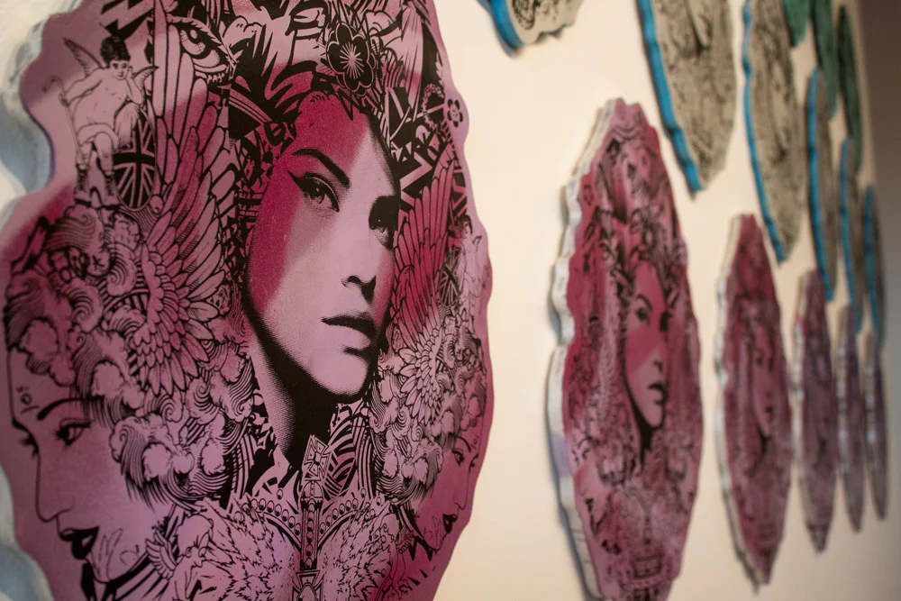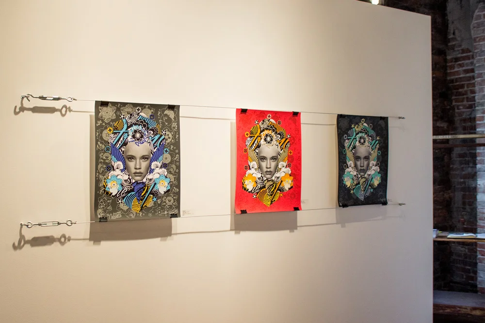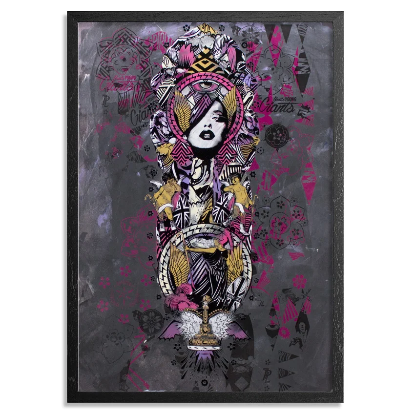 It is a dark word of money, fashion, music and politics woven into a luxurious mixture of acryllic, spraypaint, wheatpaste and varnish. We are the Gentle Young Giants.