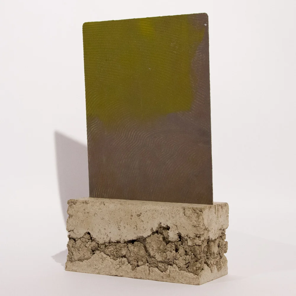 Acid on Brass Plate with Concrete Mount