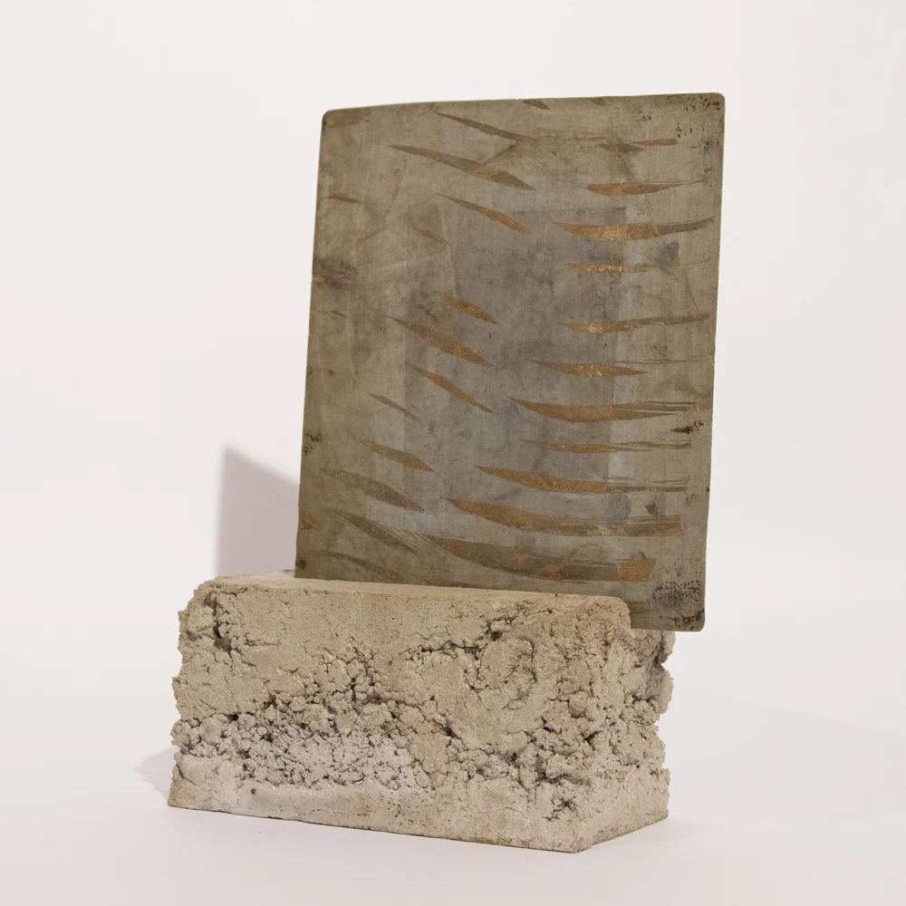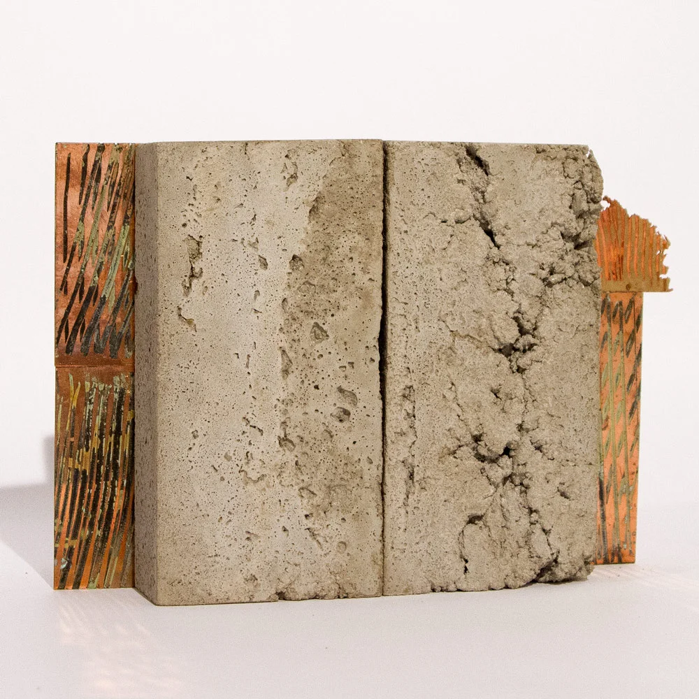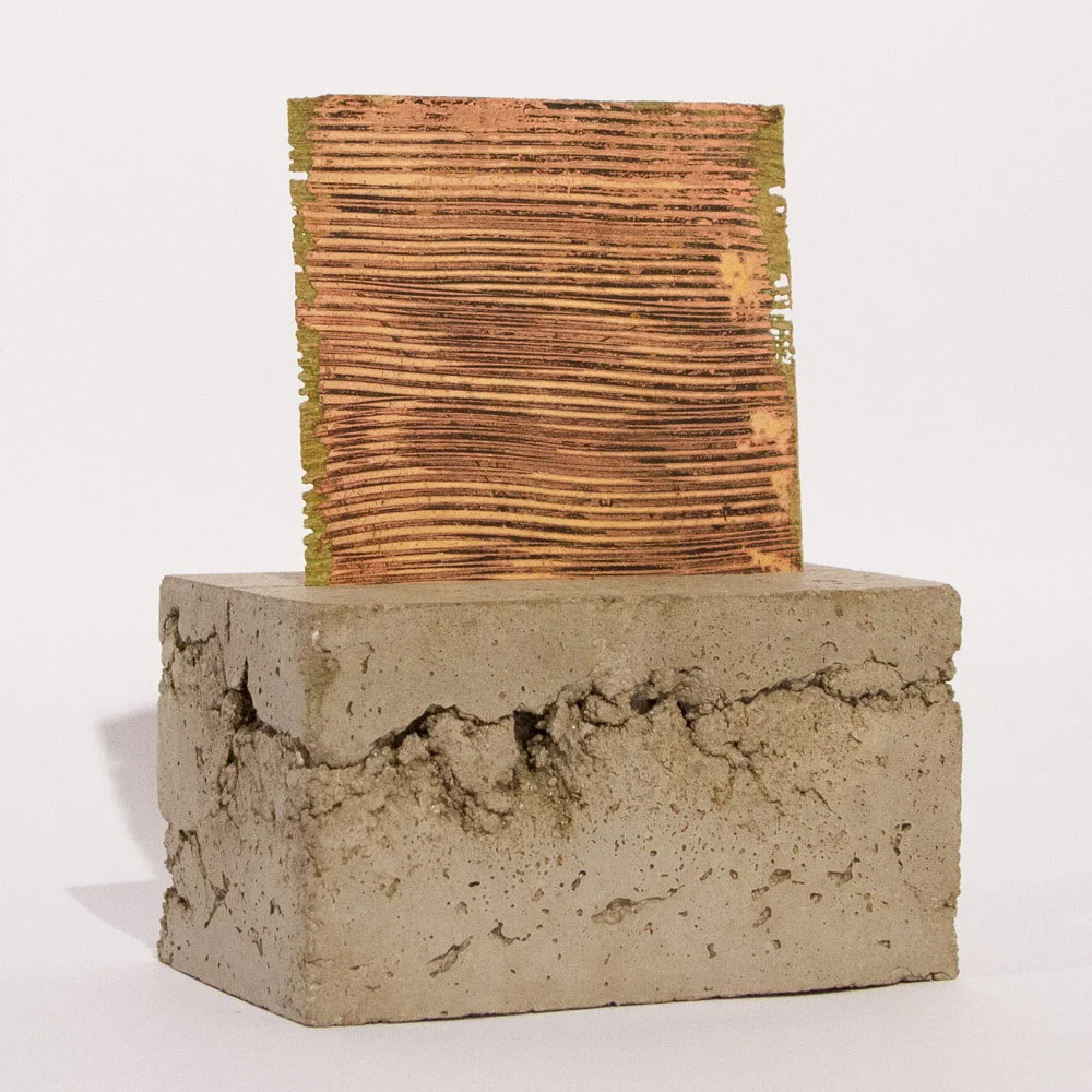Acid on Brass and Copper Plate with Concrete Mount