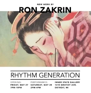 Opening Friday, May 27th Detroit artist Ron Zakrin returns to Inner State Gallery with an entirely new body of work entitled Rhythm Generation. This latest body of work centers around the influence of technology on human behavior, creativity, and expression. Pulling direct influence from his tenure as a seasoned painter, musician and producer, Zakrin’s latest collection moves viewers visually in the same way that the hypnotic sounds of electronic music move crowds of dancing bodies.